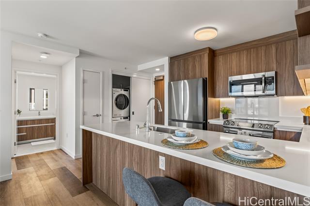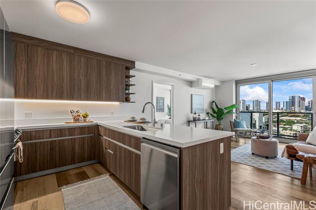 Welcome to The Park on Keeaumoku – Honolulu’s newest condominium! This brand-new 2-bedroom, 2-bathroom residence features modern finishes, an open floor plan, and a desirable layout with bedrooms separated from the living room for added privacy. Enjoy a private lanai and convenient parking, along with resort-style amenities including a pool, whirlpool, fitness center, yoga studio, movie theater, and beautifully landscaped grounds. With shops, businesses, and restaurants right downstairs, everyday life is effortless and vibrant. Conveniently located near Ala Moana Center, Waikiki, schools, and hospitals, this community offers the perfect balance of urban convenience and island lifestyle. Whether you’re seeking a stylish new home or a smart investment, The Park on Keeaumoku allows rentals with a minimum 90-day lease, making it an excellent choice for both owner-occupants and investors.