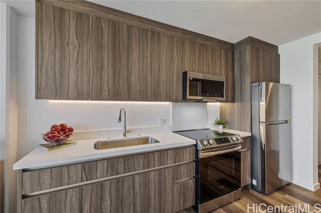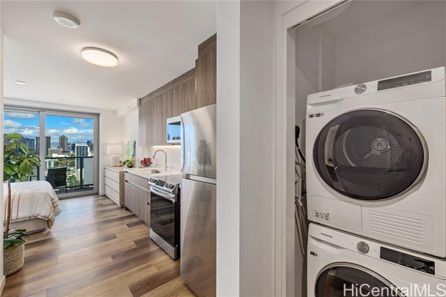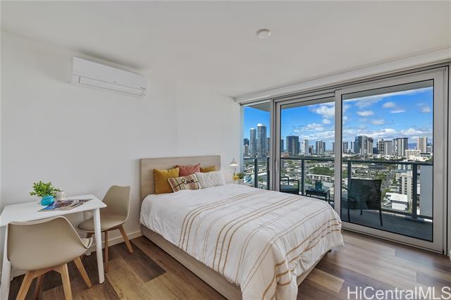 Discover urban living at The Park on Keeaumoku, a brand-new community in the heart of Honolulu. This rare studio in the Liona Tower features 324 sq. ft. of interior space plus a 71 sq. ft. lanai, creating a versatile retreat for relaxing, working, or entertaining. Modern design elements include floor-to-ceiling windows, quartz countertops, luxury vinyl flooring, split A/C, and energy-efficient appliances. Natural light fills the home, seamlessly blending indoor comfort with outdoor living. Located just minutes from Ala Moana Center, Ala Moana Beach, shopping, entertainment and dinning at your vicinity. Easy access to Waikiki and Kakaako, and Freeway. Resort-style amenities elevate daily life with an infinity pool, spa, fitness and yoga studios, co-working lounge, BBQ pavilions, a movie theater, sauna, and a landscaped central park. Offering comfort, convenience, and lifestyle, this home is a unique opportunity in one of Honolulu’s most exciting new developments.