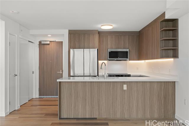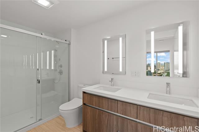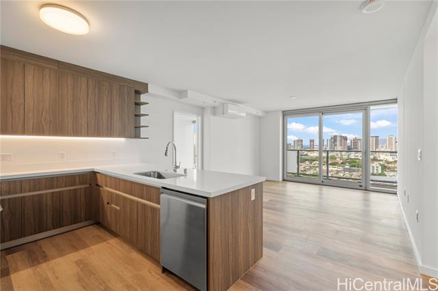Experience contemporary Honolulu living at The Park on Keeaumoku, one of the city’s newest and most anticipated condominium developments! This brand-new 2-bedroom, 2-bath residence on the high floor offers sweeping partial ocean, mountain and city views from its private lanai. The thoughtfully designed split-bedroom layout ensures privacy, complemented by an open-concept living space with luxury vinyl plank flooring, quartz countertops, and modern finishes throughout. Enjoy the convenience of two side-by-side parking stalls, split A/C in every room, and resort-style amenities including an infinity pool, fitness and yoga studios, BBQ cabanas, theater, club lounge, and lush landscaped gardens. Located in the heart of Honolulu, just minutes from Ala Moana Center, Waikiki, schools, and hospitals, and with shops and cafés right downstairs, this vibrant new community brings island living and urban comfort together. Never lived in — move-in ready! Don’t miss this rare opportunity to own in Honolulu’s newest landmark address.