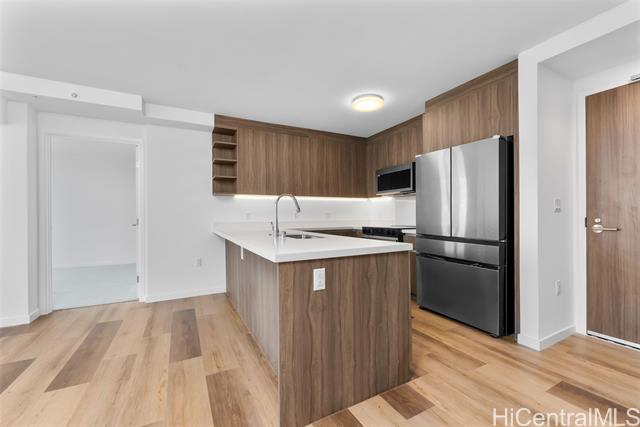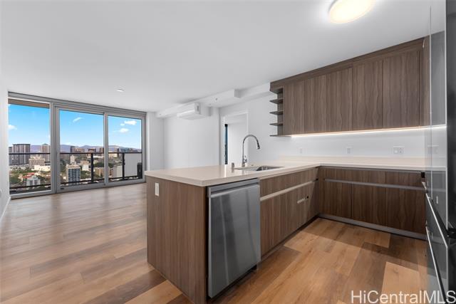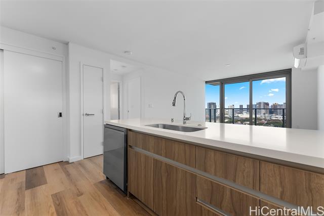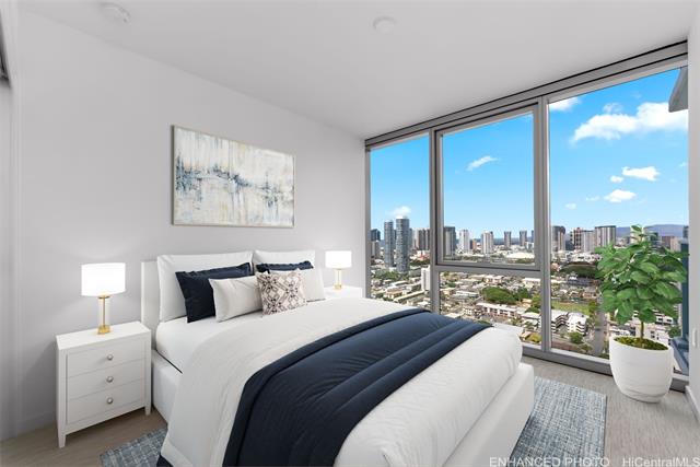 Floor-to-ceiling windows showcase sweeping city skyline views, on this high floor in the brand-new Park at Keeaumoku, bringing in abundant natural light by day and city lights at night. Modern finishes, split A/C, and energy-efficient appliances complete this urban retreat. Resort amenities include infinity pool, spa, movie theater, co-working lounges, and BBQ cabanas. Here, you’ll find the best of modern Honolulu living — a rare chance to enjoy resort-style amenities and prime Ala Moana convenience at a value unmatched by other new developments in town. A few photos have been virtually staged(enhanced).