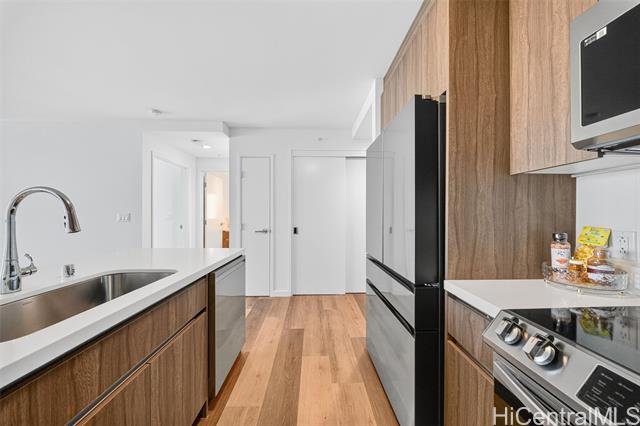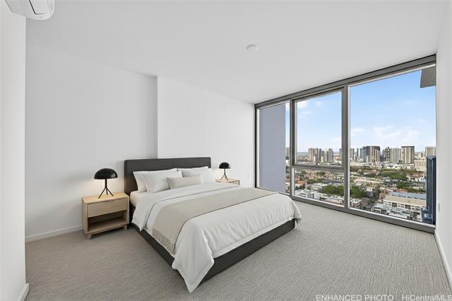 Welcome to The Park on Keeaumoku – Honolulu’s Newest Condominium! Soar above the city on the 33rd floor and experience breathtaking city and mountain views from this brand-new 2-bed, 2-bath residence. The split-bedroom layout offers privacy and comfort, while the open floor plan connects modern living spaces to a private lanai filled with natural light. Enjoy two parking stalls conveniently located near the entry, split A/C in every room, luxury vinyl plank flooring and premium modern finishes throughout. Step out to resort-style amenities including - infinity pool, whirlpool, sauna, fitness and yoga studios, theater, BBQ pavilions, clubrooms and lush landscaped gardens. With shops, cafés, and restaurants right downstairs, everyday life feels effortless and vibrant. Perfectly located near Ala Moana Center, Waikiki, schools, and hospitals, this new community offers the ideal blend of urban convenience and island lifestyle. Never lived in, move-in ready – opportunities like this don’t last long!