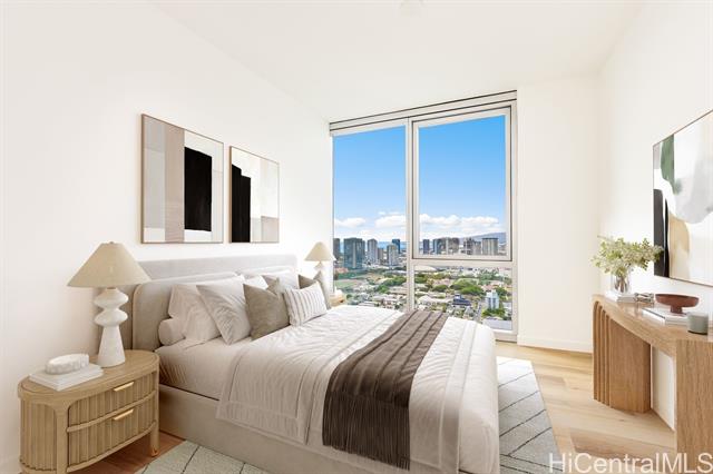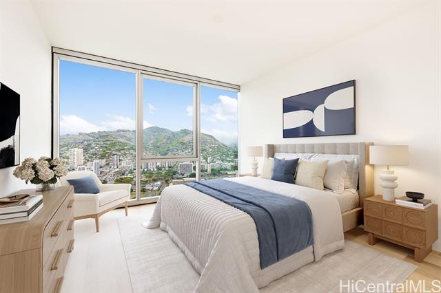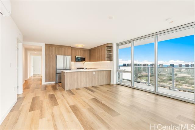 Most desired 3 bedroom 2 bath #4318 in the Liona Tower. Only 20 3 bedroom units available. Luxury living with a L-shaped lanai and floor to ceiling glass view windows offering a spectacular 180 plus degree view from the ocean to the Ewa plains, to the Koolau mountains. High quality quartz kitchen countertops designer fixtures. Unit is upgraded with hard wood flooring throughout. Amenities include 24/hr. security, movie theater, yoga room, infinity pool, spa, fitness center, pavilions, BBQ and more. Some photos are virtually enhanced. Occupancy rate estimated at 70%.