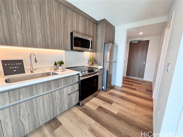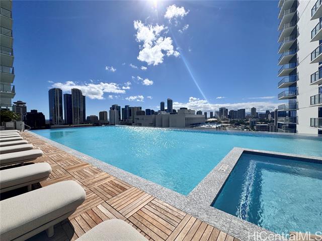 Welcome home to The Park on Ke'eaumoku! Oahu's newest residential condominium, in the vibrant and exciting midtown Ala Moana area. Studio units like this don't come by too often and will make a great home to someone looking for low maintenance fees with all the amenities they could want. This home is brand new and never lived in! It features floor-to-ceiling windows, split AC, a private lanai, luxury vinyl flooring, quartz countertops, stainless steel appliances, and an in-unit washer and dryer. Resort-style amenities include a large infinity pool and spa with breathtaking city and ocean views, BBQ pavilions, pool cabanas, expansive gym, yoga room, theatre and media rooms, four clubrooms, sauna, guest parking, and more. This property has so much to offer- a convenient location, easy freeway access, food and shopping galore, minutes from Wal Mart, Sam's Club, Target and the world famous Ala Moana Shopping Center. Experience modern, luxury living at its finest in the heart of Honolulu.