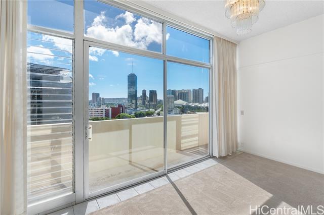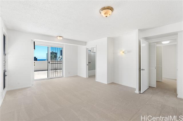 A rare opportunity to own a top-floor residence in the heart of Honolulu. With soaring 11-foot ceilings and floor-to-ceiling windows, this bright and airy unit captures sweeping city views and abundant natural light. The spacious layout offers indoor-outdoor living, opening to a spacious private lanai ideal for relaxing or entertaining. The open-concept kitchen is functional and inviting. New carpet, new paint, and exclusive extra storage shared with only one other unit. Centrally located near Ala Moana, Don Quijote, Target, and public transit, this secure, well-managed building features secured access on every floor. Experience elevated Honolulu living at exceptional value—an affordable penthouse opportunity that’s truly one of a kind.