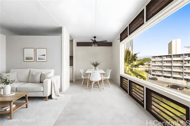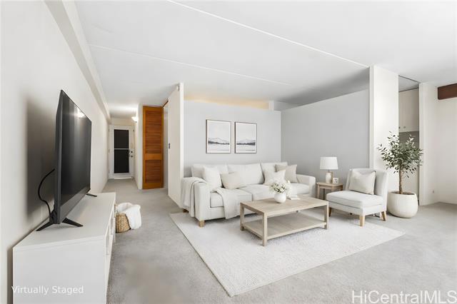 An excellent prospect for both investors and first-time homebuyers, this property presents a fantastic chance to acquire a two-bedroom residence in town. The tranquil corner unit boasts a lanai with a secured entryway, a spacious storage area, and covered parking. Recent enhancements include brand-new carpeting, accentuating the appeal of the generously sized closets. Sandalwood, a pet-friendly condominium, also offers the convenience of an on-site resident manager's office. Its strategic location provides easy access to the freeway, proximity to Don Quijote, Walmart, restaurants, bus stops, and the Ala Moana Shopping Center, making it a highly desirable living.