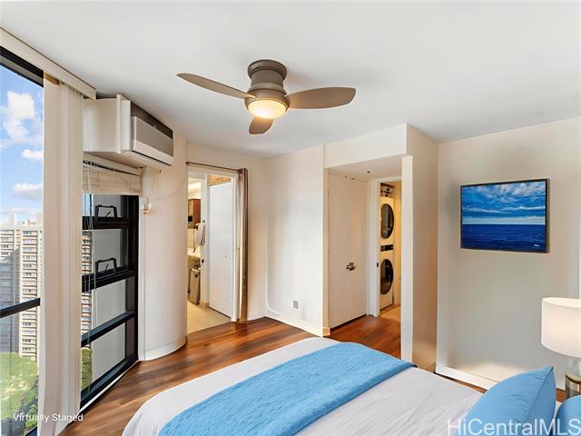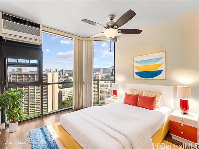 Discover Hale Kaheka living in this 2-bedroom, 2-bath condo with 2 parking stalls and stunning city, mountain, and Diamond Head views. The open-concept kitchen flows into a bright living space with AC, washer/dryer in unit, and modern comfort throughout. This secure building feels like a hidden oasis in the heart of Honolulu, featuring a koi pond, water features, BBQ areas, and a resort-style pool surrounded by lush landscaping. The building has enhanced safety with in-unit fire sprinklers. Conveniently located near Ala Moana Center, Don Quijote, and the exciting revitalization of the Keeaumoku corridor, you’ll enjoy easy access to shopping, dining, and entertainment while retreating to your private sanctuary.