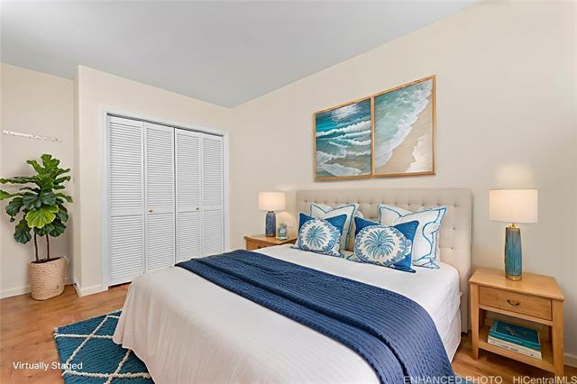 Rarely Available!! Great location with LOW $575/mo maintenance fees and convenient city living await in this bright, well-maintained, and spacious corner unit. This 2-bedroom, 1-bath condo with one assigned parking stall offers great value, privacy, and everyday comfort. Features include an in-unit washer & dryer, easy-care marble tile flooring in the living room, vinyl flooring in the bedrooms, and more. The building is fully insured and VA approved. Enjoy being just minutes to Ala Moana Beach Park, Ala Moana Shopping Center, Don Quijote, Walmart, Sam’s Club, and a variety of dining options. With its prime location and low monthly fees, this is an incredible opportunity—whether as an investment or a home. Schedule your showing today! A few photos have been virtually staged (enhanced).