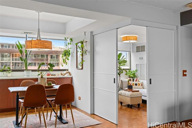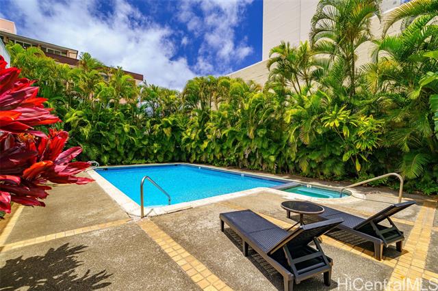 VA Assumable @2.75%! Experience the pinnacle of sophisticated living in the boutique building Punahou Regency. This stylish & spacious condo, with wood parquet floors and a mid-century vibe, features 3 bedrooms & 2 full bathrooms over 1,032 square feet. The kitchen is modern with newer stainless steel appliances. Floor-to-ceiling windows offer incredible views of banyan trees, unlike any other, while inviting an abundance of natural light. The primary bedroom features motorized black-out blinds to help ensure a good night's rest. With only two units per floor, you not only have privacy, but also, wrap-around views of the city. This is a sprinklered 1980 building with central air conditioning for a comfortable environment, while keyed entry & elevator add an extra touch of convenience and security. Residents can relish in amenities such as a refreshing pool, spa, invigorating tennis court, & secure, 1-car garage parking. This PET-friendly building offers an amazing location and an unparalleled lifestyle in the heart of Honolulu. Near public and private schools, shopping malls, medical and convenient to the freeway, this residence offers an opportunity for exceptional city living.