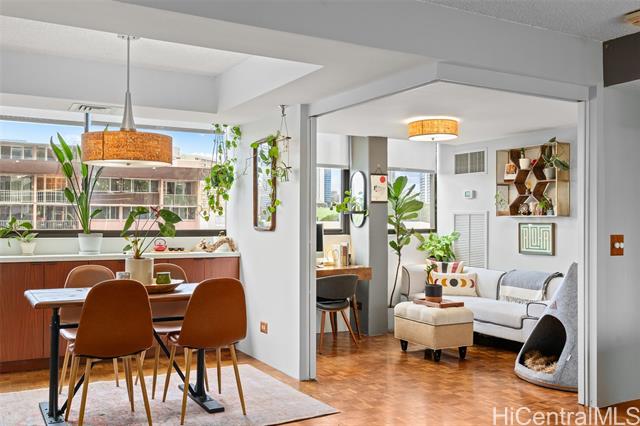 VA Assumable @2.75%! Experience the pinnacle of sophisticated living in the boutique building Punahou Regency. This stylish & spacious condo, with wood parquet floors and a mid-century vibe, features 3 bedrooms & 2 full bathrooms over 1,032 square feet. The kitchen is modern with newer stainless steel appliances. Floor-to-ceiling windows offer incredible views of banyan trees, unlike any other, while inviting an abundance of natural light. The primary bedroom features motorized black-out blinds to help ensure a good night's rest. With only two units per floor, you not only have privacy, but also, wrap-around views of the city. This is a sprinklered 1980 building with central air conditioning for a comfortable environment, while keyed entry & elevator add an extra touch of convenience and security. Residents can relish in amenities such as a refreshing pool, spa, invigorating tennis court, & secure, 1-car garage parking. This PET-friendly building offers an amazing location and an unparalleled lifestyle in the heart of Honolulu. Near public and private schools, shopping malls, medical and convenient to the freeway, this residence offers an opportunity for exceptional city living.