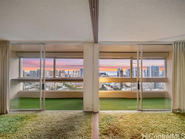 Perched high on the 35th floor of the coveted Banyan Tree Plaza in the Punahou neighborhood, this expansive 4-bedroom, 2-bath residence offers bright, open living spaces and breathtaking views. From the living areas and 2 bedrooms, enjoy sweeping, unobstructed ocean, city, and Diamond Head vistas, while the kitchen and rear bedrooms capture stunning mountain, city, and rainbow views—creating a rare wraparound experience. The lanai is an ideal perch for sunsets and evening lights. Offered for the first time by its original owner, the home presents an exceptional opportunity to update and create a custom retreat. The unit includes space for a full-size washer and dryer. Building amenities include secured entry, 24-hour security, on-site resident manager, pool and deck overlooking mature trees, party and recreation room, dedicated bike and surfboard storage, and approx. 20 guest parking stalls. 2 side-by-side full-size parking stalls are located at the front of the secured garage. Major re-piping has been completed, with easy freeway access and close proximity to Ala Moana, beaches, UH, the Convention Center, and Punahou School.