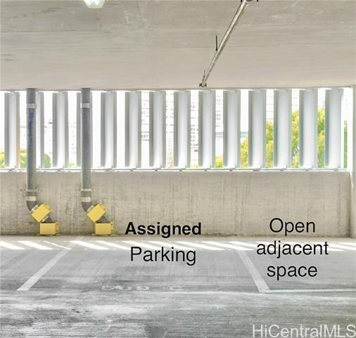Beautiful Modern spacious 1-BEDROOM PLUS DEN in a well-maintained 2013 building -- prime town location with great value and convenience! Offering over 600 sq f. of living space, this unit includes LOW maintenance fees, fire sprinklers, and covered parking with a generously sized adjacent open space. Features include a sleek open kitchen, in-unit stackable washer and dryer & a brand-new water heater (2026). This thoughtfully designed floor plan includes an oversized bedroom that can accommodate a king-size bed, mirrored closet doors and multiple dressers, complemented by a spacious bathroom. Flexible Den works great as an office, gym, or extra storage. Located on the cooler side of the building. Secured entry and night security for peace of mind. Manager is helpful. Nine guest parking stalls. Building is quiet & centrally located to Downtown, Ala Moana, Univ of Hawaii, Waikiki, shops, schools, bus line, hospitals, parks, and restaurants. Offered As Is and priced for Immediate Sale, providing an excellent opportunity for Buyers Personal Touch! Own a slice of Hawaiian paradise & Buy today! Open Sunday 2-5pm!