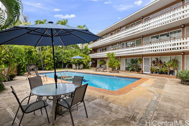 Centrally located 2 bedroom, 1 bathroom apartment with 1 parking at Alexander Gardens could be your next home or investment. Ready to move-in. Nicely upgraded throughout the entire apartment, fresh paint & very clean. This peaceful, 3 story walkup building features a sparkling pool & barbecue area surrounded by a tranquil lush garden. You’ll appreciate the peace & quiet provided by your serene corner unit. Community laundry is available downstairs however this unit has a dryer in-unit & washer hookup at the ready. Enjoy a laid-back lifestyle with only 30 units in the building. Short walks to Kapiolani Hospital, Punahou School, Maryknoll School & University of Hawaii. Conveniently located minutes from freeway access, bus lines, Manoa Marketplace, Ala Moana Shopping Center & entertainment in downtown Honolulu & Waikiki. Seller to credit Buyer 2.5% toward Buyer’s closing costs.