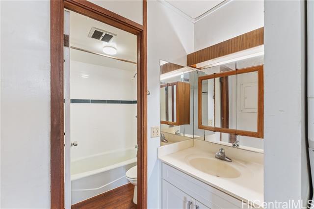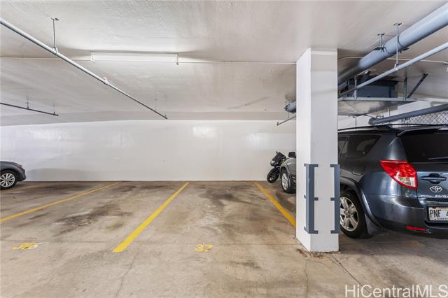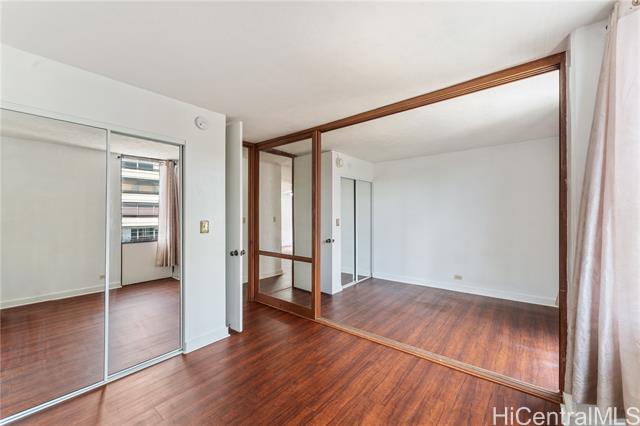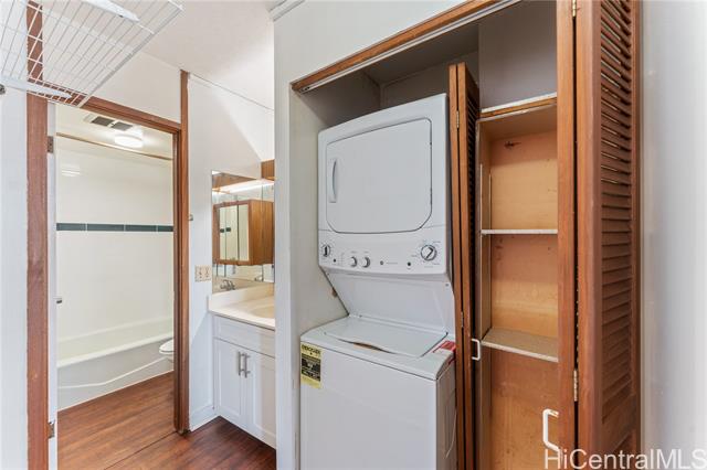 Rarely available two bedroom unit at The Alexander! This well-maintained 2 bedroom, 1 bath unit comes with a secured, assigned, and covered parking stall. Comes with a recently upgraded washer/dryer in unit. You have the option to configure the space as a two-bedroom or one large bedroom using a sliding partition. Great for a first-time home buyer or investors. Very convenient location in town, close to schools, Kapiolani Hospital, and freeway access. Amenities include a rooftop deck with gorgeous views. *Some photos were virtually staged.