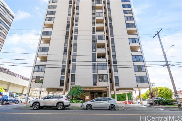 RARELY AVAILABLE CORNER UNIT at The Alexander! This move-in-ready one-bedroom offers flexibility, privacy, and everyday ease in one of Honolulu’s most convenient locations. Upgrades include Corian countertops in the kitchen, marble in the bathroom, refreshed cabinets, and luxury vinyl plank flooring. The corner position brings in natural light, cross-breezes, and added privacy. The permitted enclosed lanai expands your living area, perfect for work, dining, or relaxation. Inside, enjoy smooth ceilings with no popcorn, a full-size washer and dryer, and a smart, efficient layout. The building is secure, well-managed, and offers ground-floor parking, guest parking, a car-wash area, a site manager, trash service six days a week, and a rooftop BBQ deck with Diamond Head and city views. Located on the mauka side of the building, you’ll appreciate the peace and quiet away from freeway noise, plus quick and easy freeway access in both directions. Just minutes from Punahou, UH Manoa, and Kapiolani Medical Center, this home delivers real value where it matters most: location, comfort, and confidence.