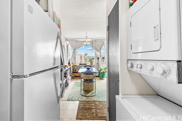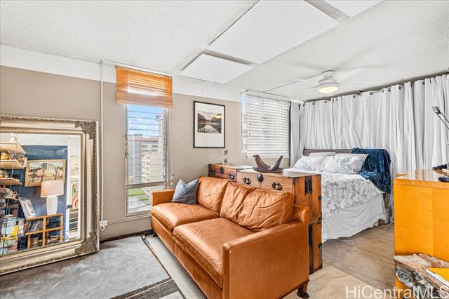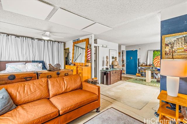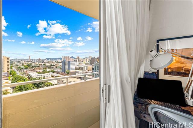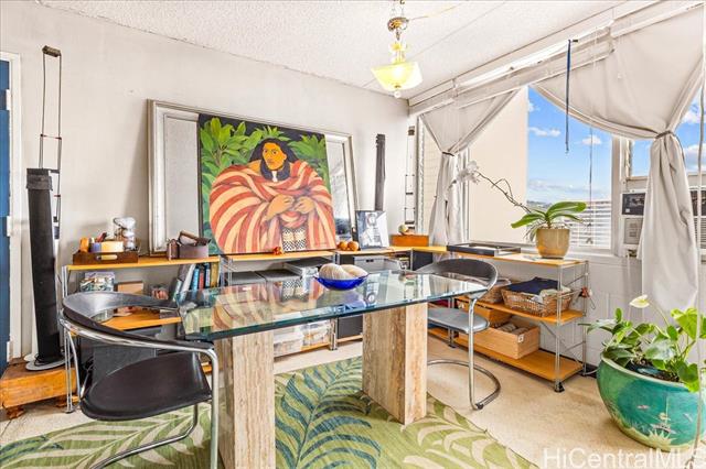 Corner unit with Diamond Head views. A unique loft conversion of a former 2 bedroom featuring an airy, open layout with endless possibilities. Perfect for those who value space, light and creative freedom. Can be easily converted to a 1 or 2 bedroom. Covered secure parking. Kitchen and bath updated in the past. Pet friendly. Maintenance fee includes all utilities.