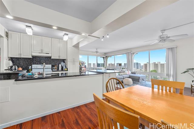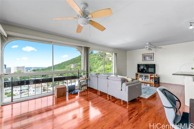 Enjoy breathtaking ocean and city views from this beautifully upgraded 2-bedroom, 2-bathroom unit featuring nearly 1,200 square feet of living space and 2 separate parking stalls. Located at the base of Punchbowl, this serene neighborhood is just 2 miles from Downtown Honolulu, Straub Hospital, Queen's Medical Center, the University of Hawaii, and Punahou/Maryknoll Schools. Move-in ready, the unit boasts granite countertops, laminate flooring, a washer/dryer, an upgraded open-concept kitchen, and has had the popcorn ceilings removed. This well-maintained boutique building offers 100% hurricane coverage, along with recent updates including new wastewater pipes and an upgraded fire alarm system. This is a fantastic opportunity to own a move-in-ready condo in a prime location with excellent building improvements and low-maintenance island living.