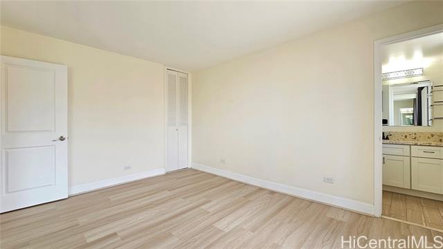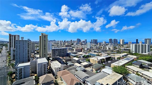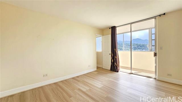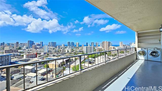 VA Assumable Loan at 5.25% with an approximate balance of $562,391.59. Spacious and beautifully upgraded 2-bedroom, 2-bath residence with 1,424 sq. ft. of living space, including a large living area and an enclosed wrap-around lanai with sweeping mountain and city skyline views. Enjoy natural cross breezes and privacy in this pet-friendly building, which features only two units per floor. Recent upgrades include fresh interior paint, new vinyl plank flooring throughout, a new refrigerator, and a new dishwasher — making this home move-in ready. From your lanai, take in panoramic views of Diamond Head, the ocean, mountains, rainbows, and even Friday night fireworks. Maintenance fees cover water, sewer, and trash. Conveniently located with easy freeway access, this home combines comfort,