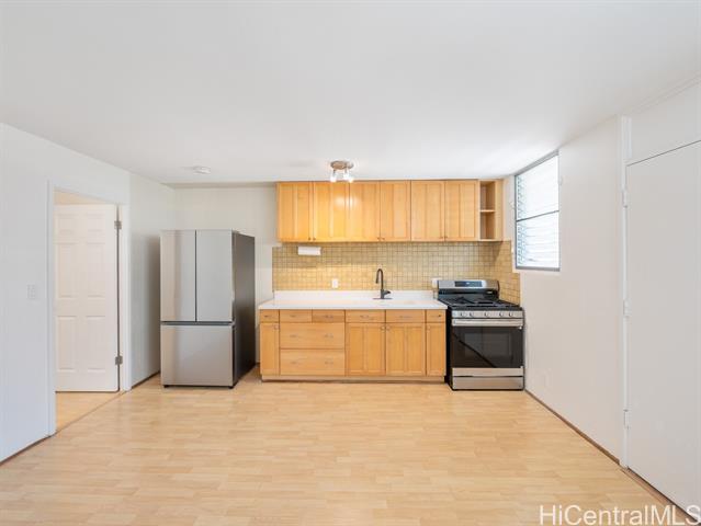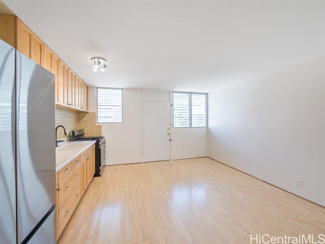Move-in ready, this charming 1-bedroom, 1-bathroom condo offers an ideal combination of comfort, convenience, and smart value for first-time homebuyers, UH students, or investors. The kitchen has been thoughtfully upgraded with replaced cabinets, solid surface countertops, a sleek new Samsung gas stove and refrigerator, new faucets, and a new garbage disposal. The open-concept layout makes excellent use of space and flows smoothly between the kitchen, dining, and living areas, creating an airy, modern vibe that feels both functional and inviting. Enjoy low monthly maintenance fees that cover gas, water, sewer, hot water, and trash—making homeownership more affordable. The building provides 100% insurance coverage for added peace of mind and includes one assigned parking stall with additional street parking nearby for guests or extra vehicles. Pet-friendly (buyer to verify). Centrally located with easy access to public transportation, major thoroughfares, and bike lanes. Just minutes from Blaisdell Center, Straub Hospital, Ward Village, Ala Moana Center, Thomas Square, neighborhood eateries, shops, farmers markets, and entertainment options. Located in the heart of Honolulu.