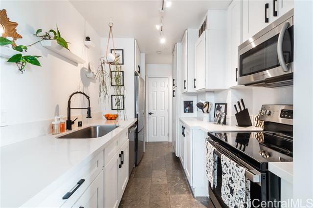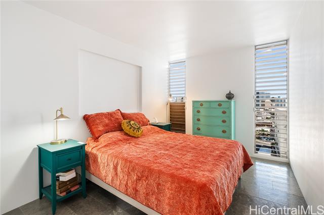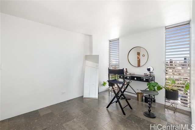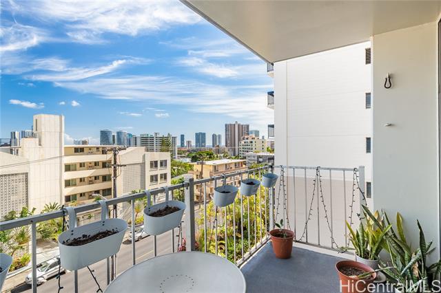 This farmhouse-inspired 2-bedroom, 1-bath condo in Makiki was renovated in 2022 and is fully move-in ready. The kitchen and bath showcase pristine white cabinets with fine-grain quartz countertops, while the bedrooms feature upgraded organized closets for added function and style. Enjoy sunset and city views from your private lanai. The secured building offers callbox entry, weekday resident manager, community garden, laundry facilities, two elevators, car wash area, one assigned stall, and visitor parking. Pet-friendly (verify) and fully hurricane insured. Centrally located near Ala Moana Beach Park, Shopping Center, Ward Village, Punchbowl, and Tantalus.