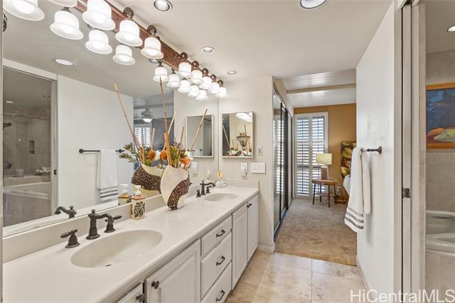 LOCATION LOCATION LOCATION!! Come see this specious and beautifully upgraded single-level condo offering 2 bedrooms and 2 bathrooms with the potential to convert into a 3 bedroom layout with an additional half bath. Located in the secure, gated community of Dowsett Point, you'll enjoy quick access to the freeway, downtown Honolulu, top-rated schools, restaurants, and shopping. Step out onto your private lanai and take in the lush greenery of the Ko'olau Mountains, stunning sunsets, and refreshing trade winds-perfect for relaxing or entertaining. The bright and open living area features large windows that fill the space with natural light. The guest room includes a custom hide-away bed and its own en-suite bathroom, while the primary suite boasts a Jacuzzi tub and a high-end Toto bidet toilet. Additional amenities include a pool, hot tub, and tennis courts with sweeping city views. Two side-by-side parking stalls are conveniently located near the elevator, along with private storage in the garage. Don't miss the opportunity to live in one of Honolulu's most desirable locations!