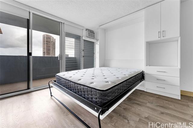 Remodeled cozy studio unit in the heart of town w/luxury vinyl flooring, brand new closet system & murphy bed. Includes refrigerator, AC and a spacious lanai to relax and unwind after a busy day. This pet-friendly, secured building has guest parking stalls, a community laundry, and a rooftop BBQ area w/amazing city and ocean views! Centrally located near town, close to Ala Moana, Kaakako, Straub hospital and freeway access. Come see this beautiful home today! ***Photos taken prior to tenant occupancy. Tenant occupied. Lease ends 03/31/2026.