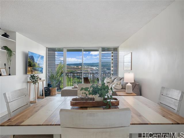Welcome to this charming 2-bedroom, 1 and 1-half bathroom unit located in the well-established 1128 Ala Napunani building known as the Greenwood. This 12th-floor unit offers sweeping views and is ideal for those looking to enjoy the convenience of urban living while still being close to some of Oahu's most important landmarks. This unit is in a prime spot for commuters and military personnel. Just a short drive from Pearl Harbor, it provides easy access to one of Hawaii's largest military bases, making it an excellent choice for those stationed in the area. Additionally, it is close to Tripler Army Medical Center, ensuring a quick commute for medical professionals and military families alike. This property also offers great access to Honolulu's downtown and Waikiki, providing residents with a variety of shopping, dining, and entertainment options. Whether you're seeking a peaceful retreat or a convenient base for work and recreation, Unit 1204 offers both comfort and practicality. The maintenance fee includes ELECTRICITY, water, sewer, TV cable, trash, and insurance for the exterior of the building. This building is 100% insured!
