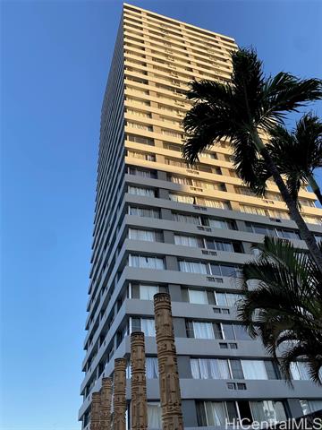 Highest floor for one bedroom corner unit with views from Honolulu to ocean and the Leeward Coastline to the Waianae Mountains. Assigned covered tandem parking stall for your two cars. Tenant occupied with 48 hours noticed to show. To be sold in "As Is, Where Is" condition. Bali Land Associates Leasehold fixed at $56.54 a month until March 31, 2078, no step up or renegotiation. Monthly Special Assessment of $128.50 til January 2026.