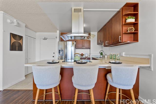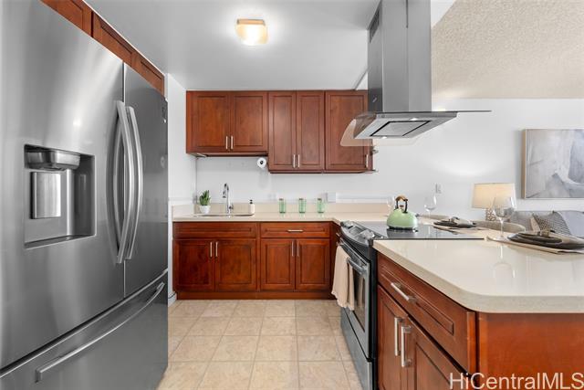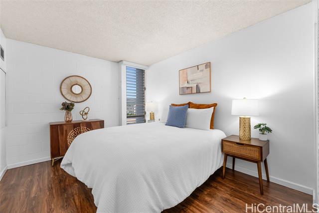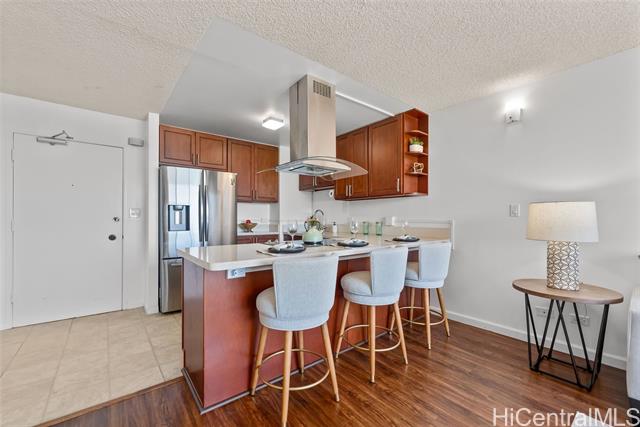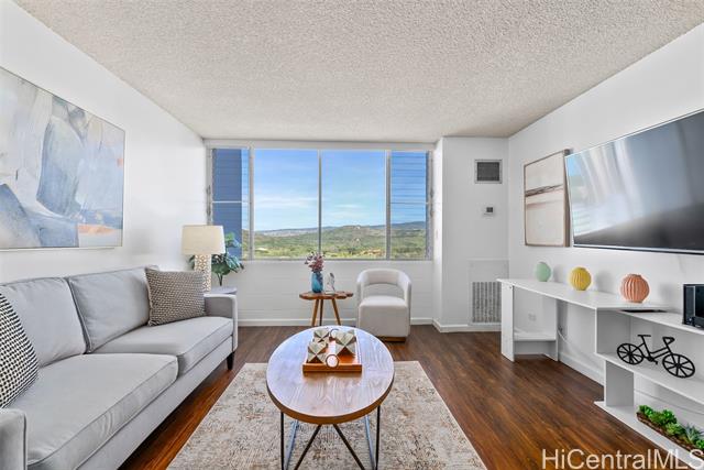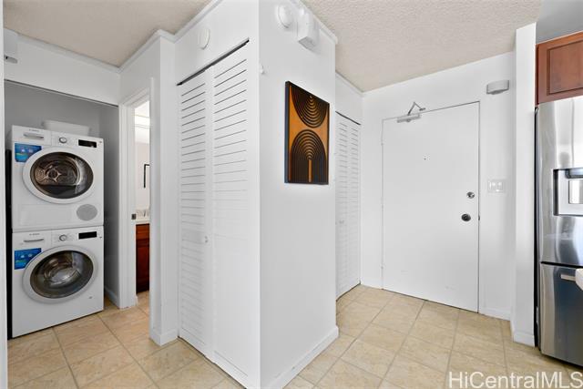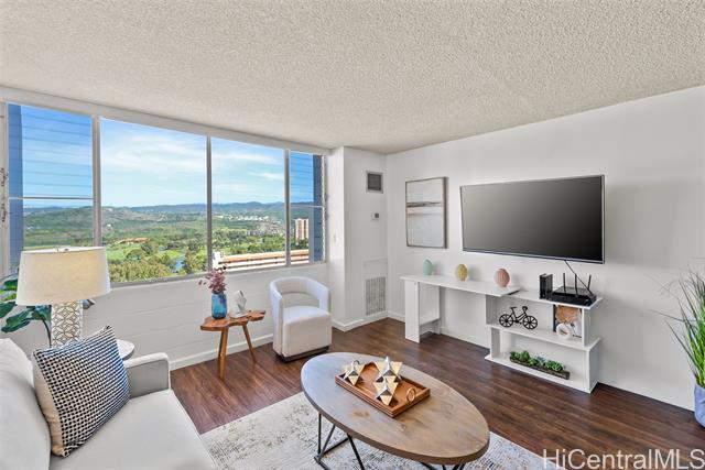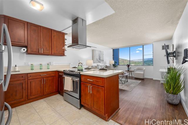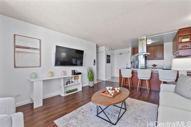 Beautifully upgraded 1 bedroom, 1 bath residence with 1 parking, in-unit washer/dryer, and central A/C. This spacious 594 sq ft unit offers a comfortable and functional layout and is located on the mauka side of the building with views of the Honolulu Country Club Golf Course and the Ko‘olau Range, steady tradewinds, and no direct afternoon sun. The unit is move-in ready and features quartz countertops, vinyl flooring, stainless steel kitchen appliances, and a front-load Bosch washer and dryer. Harbour Ridge is a secured, well-maintained building with 24/7 security, 16 guest parking stalls, and two on-site pools. Maintenance fees include electricity, cable TV, central A/C, hot water, sewer, and water, and the unit comes with a generously sized parking stall conveniently located near the elevators. A great opportunity to enjoy quality upgrades, views, and value in a well-managed building. You don’t want to miss this opportunity!!!