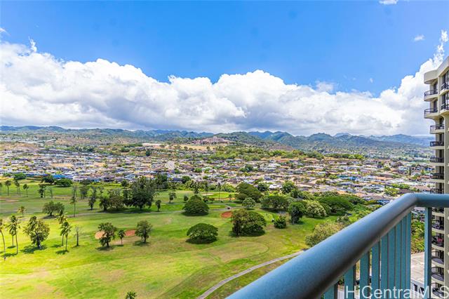Best value & rarely available 3-bedroom, 2-bath condo, with 2 side-by-side covered & secured parking stalls. This corner unit is a private oasis separated from the other units on the floor by a gate. The open living area is bathed in natural light & offers breathtaking golf-course & mountain views from the lanai - a perfect spot to relax & unwind where you can enjoy the most magnificent vistas in the world - vibrant rainbows, sunrises, sunsets, peaceful town, cityscapes, & dynamic sky scenes. The unit features cross breezes that enhance the fresh, airy ambiance throughout. Updated Kitchen & Bathrooms: New refrigerator, kitchen faucet, garbage disposal, reglazed bathtub, new shower fixtures & toilets. Additional shared storage near the elevators. Ideally situated in the highly desirable Moanalua school district & pet-friendly community, Country Club Village amenities include walking path, barbecue area, swimming pool, meeting room, bike storage, security guards, resident manager, & ample guest parking. Conveniently located near Honolulu Intl Airport, Pearl Harbor/Hickam, a community park, freeway access, Tripler & Kaiser Hospitals. 1+ more photos have been enhanced.