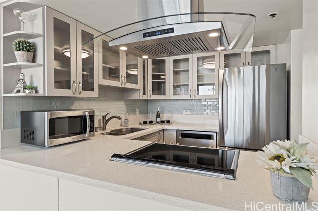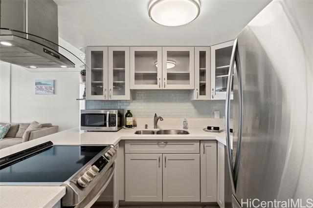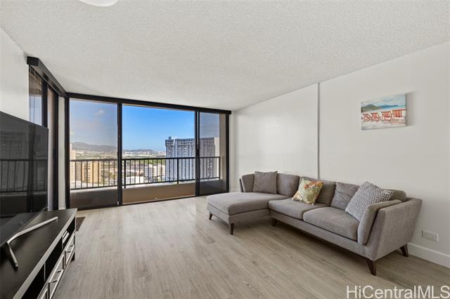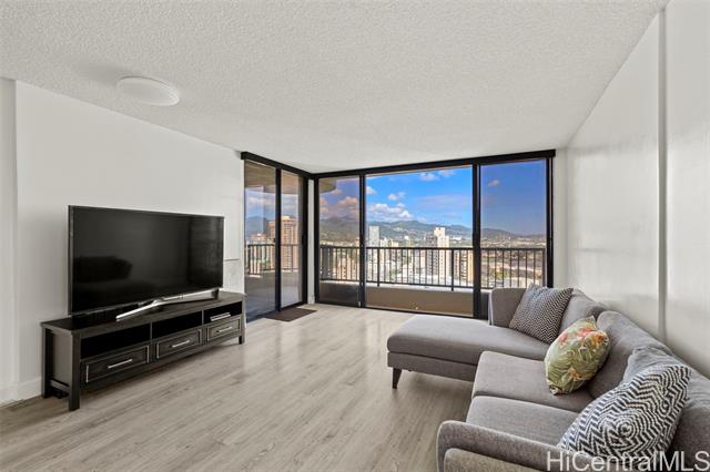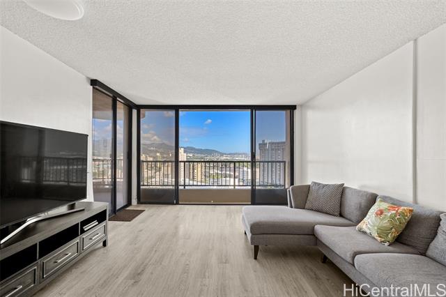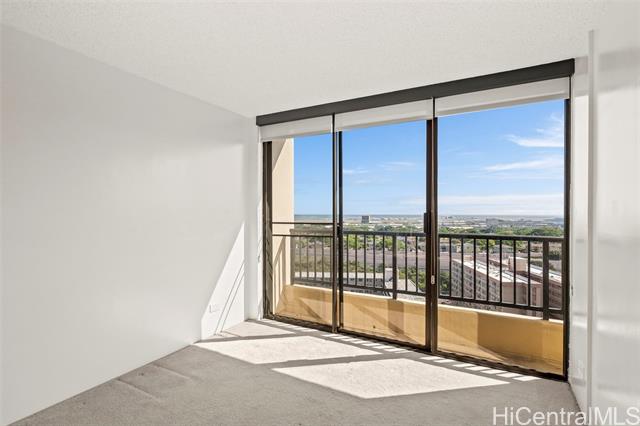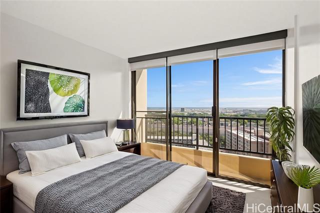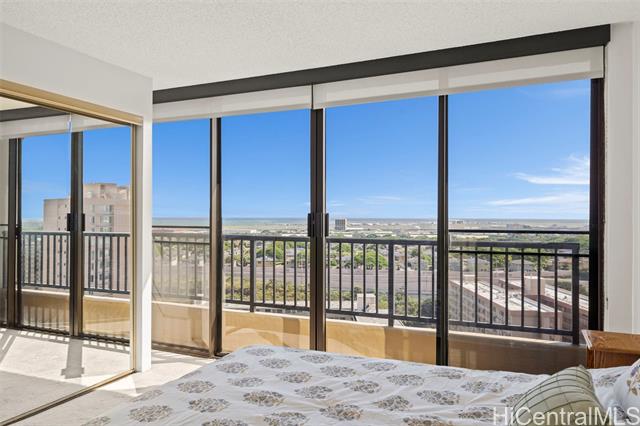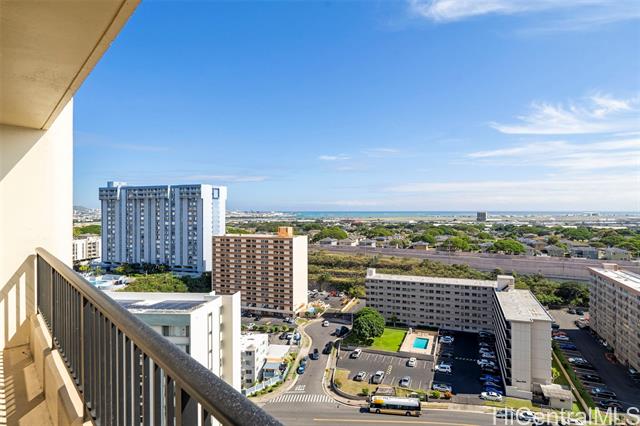 Discover 21D, a Horizon View Tower high-floor gem boasting unparalleled views stretching from Diamond Head to Pearl Harbor. With ample natural light and refreshing breezes, this well-maintained unit remains cool and comfortable without needing AC. This spacious unit with over 900 sq. ft. of interior living features updated bathrooms, a renovated kitchen with stainless steel appliances, and a gorgeous view from every room. Practical amenities include fire sprinklers, BBQ area, pool, recreational area, and sauna, easy access to freeways and shopping, a large lanai with brand new railing and a modest maintenance fee powered by solar panels. This 2-Bedroom, 2-Bathroom unit offers the perfect blend of privacy and accessibility, with only four units per floor. Enjoy added security and convenience with a secure gated entrance and dedicated parking space. Assumable VA loan fixed at 4.999% for qualified VA buyers only. Minutes away from Tripler Hospital and Daniel K. Inouye International Airport. Don't miss this opportunity to experience an island living at its finest.