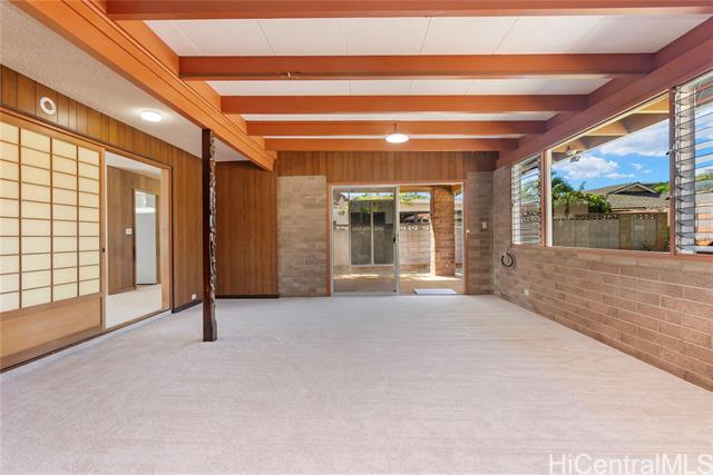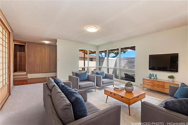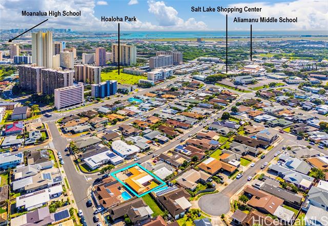 Rarely available and highly sought after single level home on a level lot in Salt Lake. Move-in ready, well maintained, and recently renovated, this 3 bedroom, 2 bathroom home features an attached two car carport with multiple storage closets. The renovated kitchen offers new appliances, updated cabinets, and quartz countertops. Both bathrooms have been refreshed with new vanities, lighting, and hardware. Additional improvements include new carpet and vinyl flooring throughout, fresh exterior and interior paint, and a tile roof that has recently been coated for a clean, updated look. Enjoy the private patio that opens to a fully fenced yard, ideal for entertaining, playtime, or pets. There is also a new in house washer and dryer. Salt Lake is conveniently located near Honolulu International Airport, freeway on and off ramps, and a wide variety of shopping and dining options including Pearlridge Center and the NEX. A true gem in a desirable location, ready for its next owners to call home. One or more photos have been enhanced.