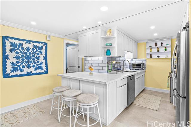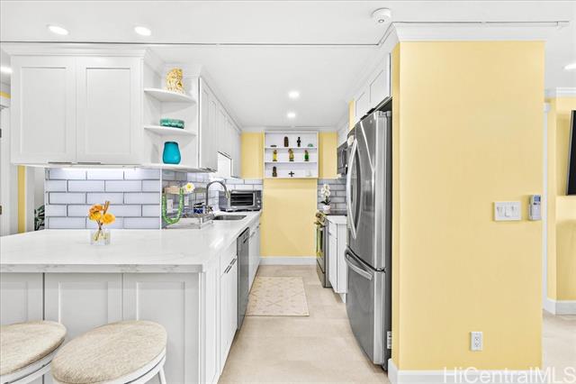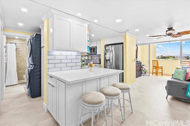 Must-see, a truly unique, luxurious, and beautiful home! 3 bd, 2 ba, 2 pkg (tandem) unit at Sunset Lakeview! Custom, professional, and full rebuild of $290,000 completed February 2024 - January 2026. Brand new windows, doors, walls, ceilings, floors, appliances, etc. Highlights: recessed lighting, new front security door, split A/C system, TOTO toilet, custom safety window screens, new plumbing pipes and water heater, and more. Breezy and bright, this luxurious unit at Sunset Lakeview offers mountain, rainbows, and sunset views. Amenities include swimming pool and sauna, playground area, fitness centers, dog park, BBQ grilling area. Guest parking. 24-hour security. Building is fire rated with new fire alarm system. Minutes from Salt Lake Shopping Center with Safeway and Longs. Daniel K. Inouye International Airport close by. Two bus routes outside the building, convenient access to freeway, military bases, downtown Honolulu. Thoughtful community with a variety of shopping and restaurants nearby! Fully furnished, move-in-ready condo provides seamless indoor-outdoor living, optimum comfort, and peace-of-mind with thoughtful design.