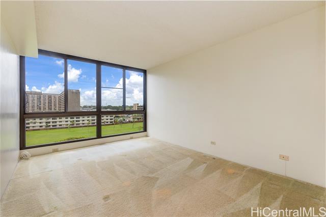 This end-unit residence at Country Club Plaza is on the breezier and cooler side and features 3 bedrooms, two bathrooms, and the added convenience of TWO parking stalls. Offering a spacious and functional layout, the home includes an open living and dining area perfect for both relaxing and entertaining, with pleasant views of the neighborhood park enjoyed from the living room and main bedroom. The thoughtfully designed floor plan separates the bedrooms for enhanced privacy, while large windows bring in abundant natural light. Residents can enjoy community amenities such as a swimming pool, a BBQ area, and beautifully maintained grounds. Ideally located just minutes from shopping, dining, medical facilities, military bases, Honolulu International Airport, and freeway access. This property presents an excellent opportunity for homeowners or investors looking to personalize and upgrade. It is fully livable but could benefit from improvements.