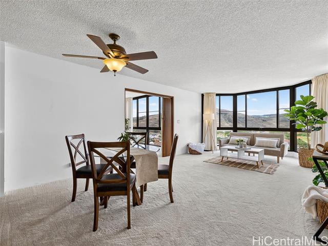 Welcome to Country Club Plaza—where comfort, convenience, and views meet! This well-maintained 2-bed, 2-bath residence offers an open layout that invites natural light, refreshing cross-breezes, and enchanting views from every room. Featuring refreshed carpet, 2 parking stalls, and fire sprinklers, this home offers peace of mind & move-in ready comfort. Enjoy resort-style amenities including a pool, BBQ grills, sauna, ample guest parking, 24-hour security, and secured entry. This pet-friendly building welcomes your four legged companions & boasts 100% hurricane insurance coverage as an added benefit for your protection. Conveniently located near Kaiser and Tripler Hospitals, Honolulu International Airport, military bases, schools, shopping, and freeway on/off ramps. Experience Honolulu living with the tranquility & convenience that Salt Lake is known for!