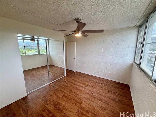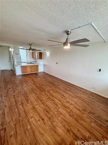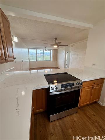 Step into this renovated "penthouse" open, spacious design and elegant finishes create the perfect blend of comfort and sophistication. The open flr plan feats. quartz countertops, a built-in dining area ideal for entertaining, and custom cabinetry with ample storage. Large windows invite refreshing breezes throughout while framing mountain and golf course views, creating a serene view for everyday living. The building is in the process of receiving extensive modern updates, including all-new plumbing, a new roof, fresh ext, painting, and upgraded walkways—ensuring lasting quality and peace of mind. Nestled in a quiet, friendly community with a relaxed ambiance, this home offers privacy with a warm neighborhood feel. Its prime central location provides convenience- mins from Pearl Harbor, Tripler Medical Center, shopping centers, golf courses, the airport, dining, and with quick access to H-1.Amenities include a swimming pool, BBQ area, secure entry, and an on-site resident manager. HOA fees include all utilities—electricity, cable/internet—providing worry-free living.This rare penthouse delivers space, style, and incredible value in one of Hon. most convenient locations.