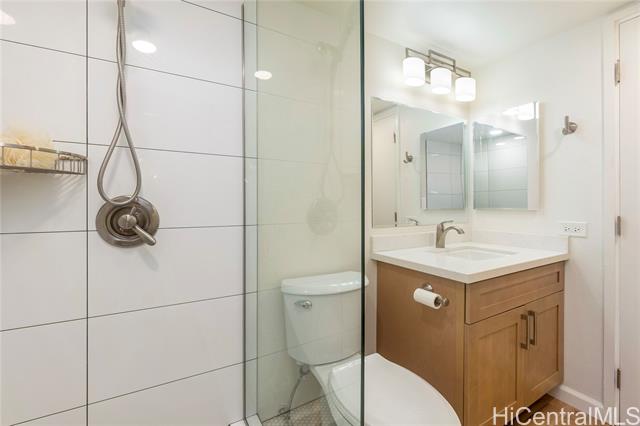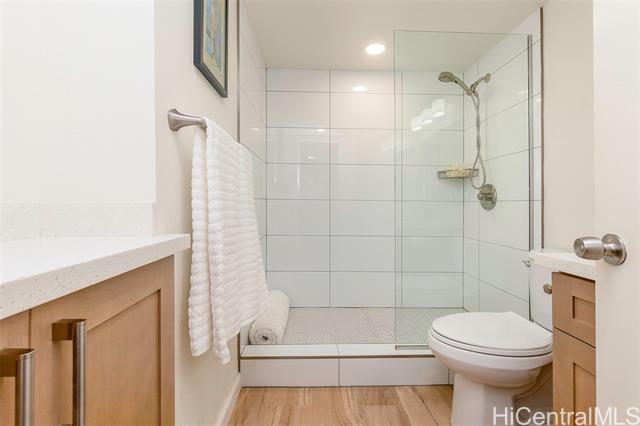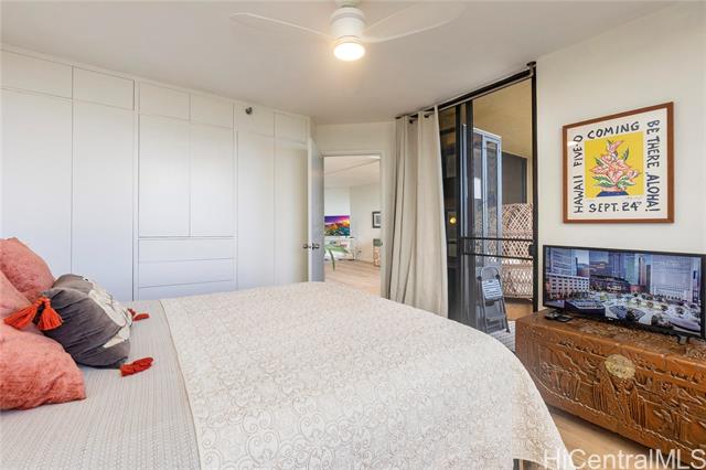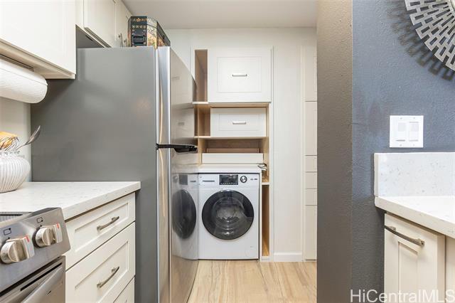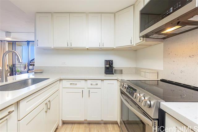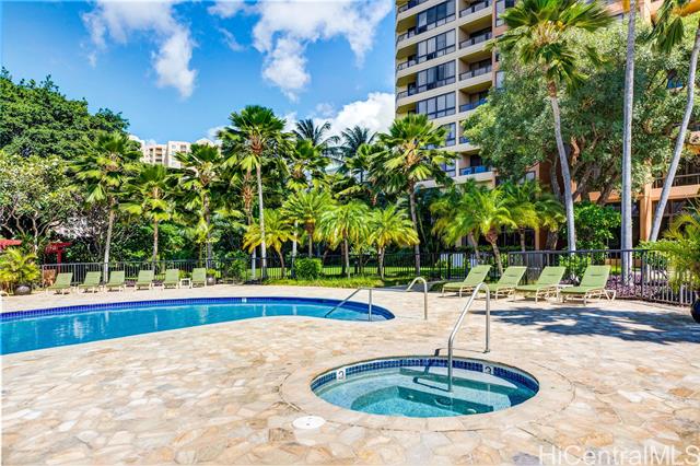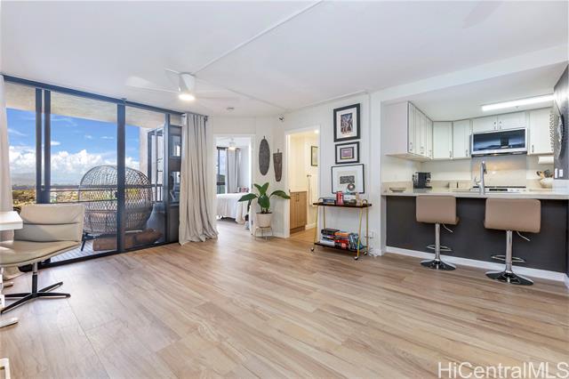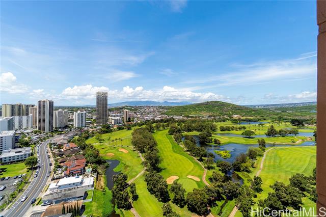 Beautifully remodeled corner unit at Plaza Landmark with stunning panoramic views of the golf course, city, ocean and mountains. This thoughtfully upgraded condo features LVP flooring, a spacious walk-in shower, and custom built-in cabinetry in the kitchen and bedroom to maximize storage and functionality. Enjoy the views from your private lanai, perfect for relaxing and watching the sunset. The unit includes a covered parking stall and a convenient storage closet located on the same floor. Plaza Landmark is a gated, secure, and pet-friendly building with beautifully landscaped grounds and great amenities including a pool, jacuzzi, BBQ cabanas, exercise room, and saunas. Centrally located near Tripler Army Medical Center, the airport, Pearl Harbor, Honolulu Country Club, shopping, dining, schools, and bus lines, offering easy access to everything Honolulu has to offer. One or more photos have been enhanced.
