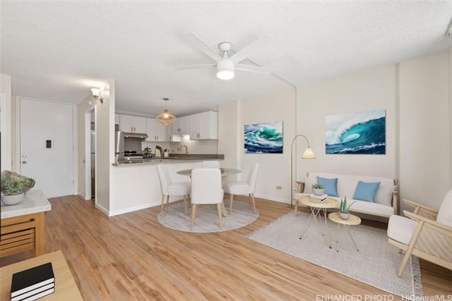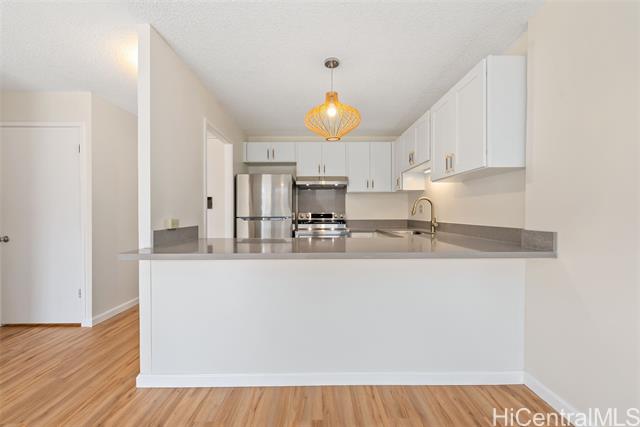 Welcome to The Lilikoi, located in the heart of Salt Lake! This fully remodeled 1-bedroom, 1-bathroom condo features TWO parking stalls and a massive, covered lanai with storage that spans the length of both the living room and bedroom. Enjoy a gorgeous new kitchen with quartz countertops and new stainless-steel appliances, along with new luxury vinyl plank flooring, fresh paint, new light fixtures and fans, updated shower, an in-unit washer and dryer and new Air Conditioning units. The Lilikoi is a secure building offering a pool and is ideally situated on the quiet end of Salt Lake, just minutes from grocery stores, shops, restaurants, parks, military bases, and freeway access. A few photos are virtually staged(enhanced).