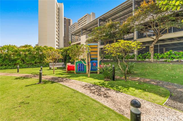 Franklin Towers is a deluxe condominium complex located in the convenient Salt Lake Area. There are numerous amenities for everyone: swimming pool with 2 jacuzzis, doggie park, kids' play area, BBQ, basketball court, tennis court, bike storage, and a community garden. Two apartments per floor provide residents with privacy. 24-hour security. Recent upgrades to the apartment include a new split A/C system in Nov 2024, new washer & dryer in Sept 2025, a tankless water heater, and upgraded kitchen cabinets. Beautiful view of the golf course, Diamond Head, and a sliver of ocean. This apartment is move-in ready! Come see it today!