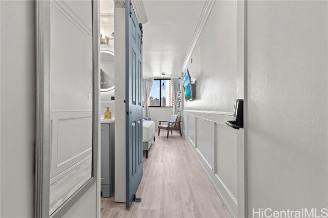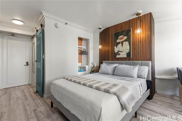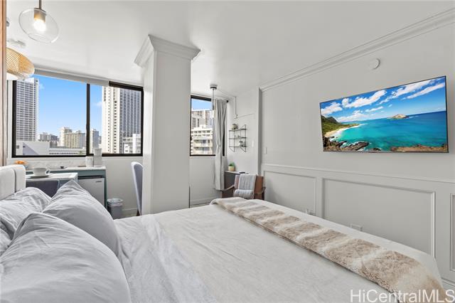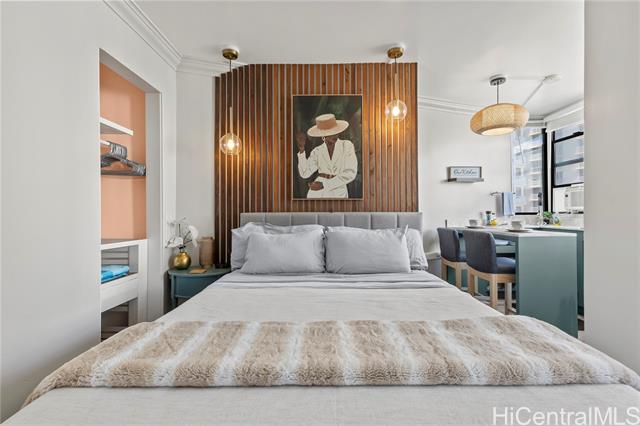 Discover this exquisite 240 sq ft studio condo at the Waikiki Grand Hotel, a prime investment opportunity just 2 minutes from the world famous Waikiki Beach! This is a turnkey unit showcases a contemporary modern style blending sleek design with functional elegance, making is perfect for a short term rental or personal use.
