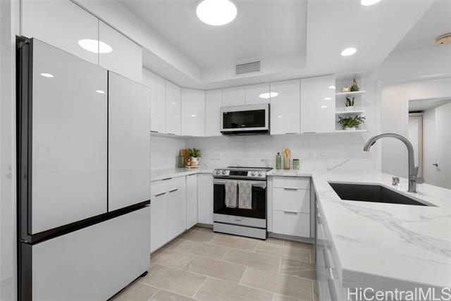 Enter into luxury at The Watermark Waikiki, where contemporary elegance meets resort-style living. This fully remodeled 2-bedroom and 2-bath condo offers a bright and open layout with floor-to-ceiling glass windows in the living room, filling the space with natural light and framing stunning ocean, marina, garden, and city views. The sleek, modern kitchen boasts quartz countertops, high end appliances, and lacquered cabinetry, while spa inspired bathrooms feature walk-in showers and designer finishes. Enjoy world-class amenities on four acres of lush tropical gardens, including a heated lagoon-style infinity pool, spa, sauna, state-of-the-art gym, BBQ pavilions, and 24 hour front desk resident specialist services. With 2 parking spaces and an in-unit washer and dryer, convenience meets sophistication in this move-in-ready retreat. Located near Ala Moana Beach, premier shopping at the Ala Moana Mall, and Waikiki's vibrant dining scene, this home offers a perfect blend of tranquility and excitement. Your dream lifestyle awaits-schedule a private showing today!
