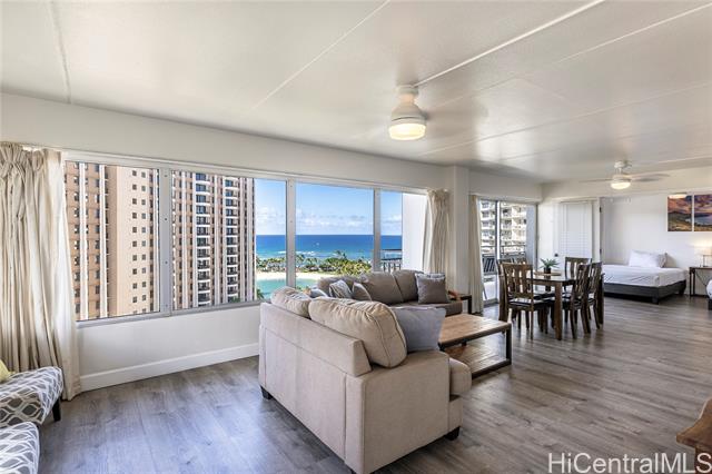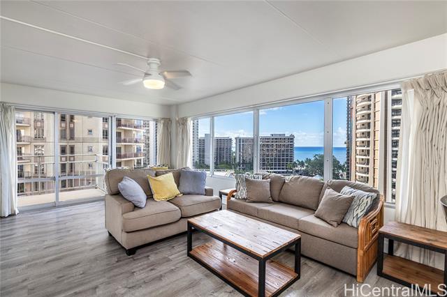 Beautiful ocean and lagoon views in the 12th floor of the iconic Ilikai. Currently the lowest priced 2/2 with ocean view listed in the building! This unit was renovated in 2019 with everything turn-key: granite countertops, stainless steel appliances, kitchenware, split AC and more. The Ilikai is resort-zoned condo-tel which offers legal daily rentals. This building has resort-style amenities including two pools, on-site dining, concierge service, and valet parking this is a paradise away from home as the you are located just a few minutes walking directly to the beach and also world class shopping in Waikiki and Ala Moana Center. Truly a prime location. Perfect for investors looking for an investment in world-class Waikiki while being able to use the unit for their personal use.