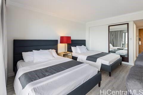 All Brand-New Remodeled 2023 Ocean Marina Sunset Views at Ilikai! This unit has the best direct ocean views available. While relaxing in your spacious condo or sitting on your shaded lanai, gaze out the stunning blue ocean and watch the sail boats or beautiful Hawaiian sunsets. This beautiful, completely renovated condo is outfitted, a 55" flat screen smart TV, internet work desk, kitchen with breakfast bar, fridge, and microwave. The 500sf condo with a huge 120sf lanai has gorgeous modern style furniture, including two queen beds and a sofa bed. The condo also has a split-system air conditioner and free high-speed Internet. The Ilikai is a landmark condominium hotel on Waikiki beach, located between the 5 star Hilton Hawaiian Village and Ala Moana Beach Park. There are dozens of restaurants, shops and attractions within easy walking distance.