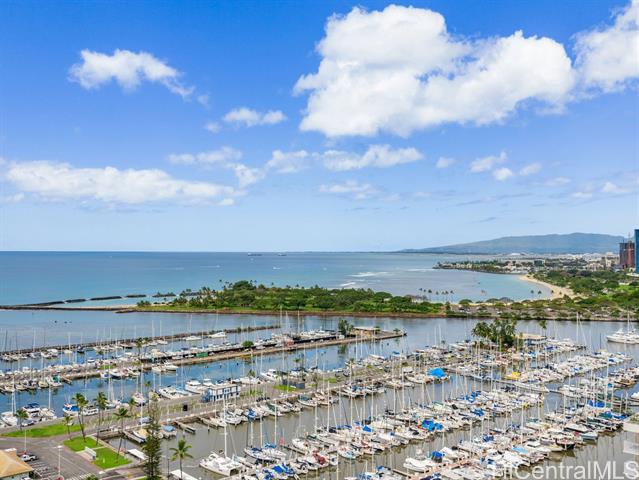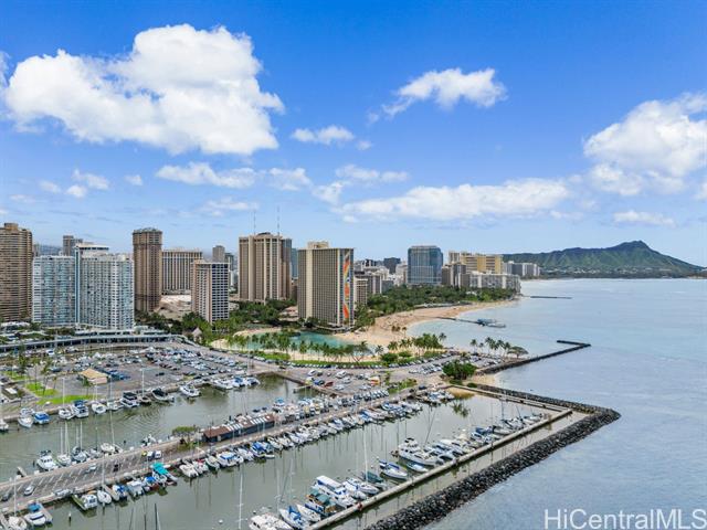 Experience iconic island living in this direct marina and ocean-view one-bedroom at the Ilikai Hotel. Located at the gateway to Waikiki, this residence offers the ideal blend of resort-style living and investment potential in one of Honolulu’s most recognizable buildings. The thoughtfully designed layout features approximately 500 sq ft of interior space and a generous 120 sq ft lanai for true indoor-outdoor living. Enjoy a full kitchen with stainless steel appliances and granite countertops, plus a ductless A/C system for year-round comfort. Resort amenities include a heated main pool, terrace-level pool, 24-hour fitness center, on-site restaurants, shops, and more. Just steps from world-famous beaches, Ala Moana Center, and Waikiki’s vibrant dining, shopping, and entertainment, the Ilikai is renowned for its prime location and historic charm. Currently managed through the Ilikai Hotel rental program, this property is ideal as a vacation retreat, income-producing asset, or your own island getaway.