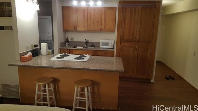 Charming studio with a full kitchen and washer/dryer in the unit. Fully furnished with one assigned parking stall. Great amenities including a pool, spa, sauna, fitness center, BBQ areas, 24-hour security, and full-service management. WiFi and basic cable are included in the maintenance fee. Convenient location, across the street from Waikiki Beach, one block from Ala Moana Shopping Center. The unit is 96.893% fee simple with the AOAO holding both the right and obligation to acquire the remaining 3.107% leasehold interest by December 31, 2039. Lease rent is $22.82/quarter or $7.61/month.