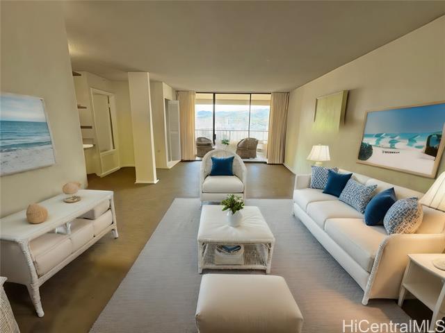 Discovery Bay Condominium is situated in very convenient part of Waikiki, only about 10 minute walk south to surfer popular Kahanamoku Beach, about 10 minute walk west to world famous Ala Moana Center and to all the world class shops and restaurants. Unit has spacious 86sf Lanai (veranda) with beautiful mountain view. Unit comes with 1 assigned parking. Wonderful opportunity for either for your dream island home or for your investment. Don’t miss out ! It is a Leasehold property as Discovery Bay Condominium Association owns 96.893% of beneficial fee interest. Fee purchase opportunity is available for $129,816 if applied before July 31, 2025 but will increase 30% to $168,734 beginning on August 1, 2025. Please go to Discovery Bay Condominium Website for more information. Livingroom and Bedroom are virtually staged in photos.