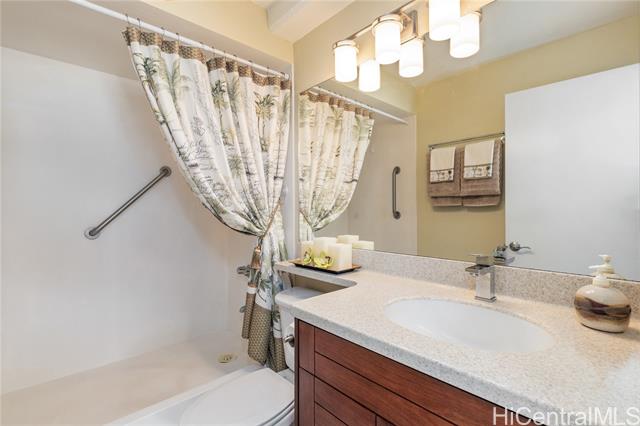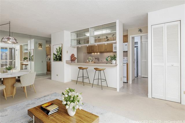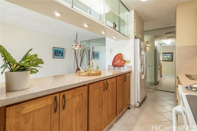 Embrace the vibrant island lifestyle you have always dreamed of at Discovery Bay – Resolution Tower. Wake up to mountain views often graced with rainbows and enjoy the refreshing cool trade winds, complemented by the comfort of central air conditioning in this beautifully updated one-bedroom home. The kitchen and bathroom have been thoughtfully upgraded, and plantation shutters add a touch of island elegance. Enjoy one secured, covered parking space and easy access to Waikiki Beach, Ala Moana Beach Park, Magic Island, and the Hawaii and Waikiki Yacht Clubs. World-class shopping and dining at Ala Moana Center are just moments away. Discovery Bay offers resort-style amenities, including a swimming pool, jacuzzi, fitness center, sauna, expansive recreation deck, and BBQ areas for gatherings. The unit is 96.893% fee simple, with the remaining 3.107% leasehold offered before the lease expires on 12/31/2039. Lease rent is $38/quarter, and a pricing method for the remaining interest has been agreed upon. Some rooms have been virtually staged.