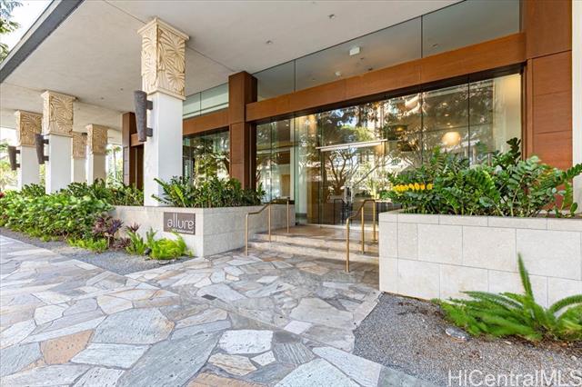 Highly desirable corner-end 2-bed, 2-bath with 1 covered parking luxury residence in Allure Waikiki. This rare floor plan is the lowest priced unit on the market, positioned well below market value and under the 2026 tax assessed value, presenting the best purchase opportunity in the building. The unit offers enhanced privacy and floor-to-ceiling L-shaped windows fill the home with abundant natural light. The spacious covered lanai showcases beautiful views of the Ala Wai Canal, city lights and mountain views. The open-concept living area flows into a gourmet kitchen featuring granite countertops and Viking stainless steel appliances. A long private entry hallway creates a grand sense of arrival while adding privacy, with the residence also including central AC. Allure Waikiki provides secure luxury living with key fob access, 24/7 security and concierge service. Resort-style amenities include a heated pool, jacuzzi, fitness center, BBQ areas, fire pit, recreation lounge, gardens, surfboard storage & guest parking. Ideally located at the entrance of Waikiki near beaches, dining, shopping, Ala Moana Center & Hawaii Convention Center. Exceptional value for a luxury corner-end home.