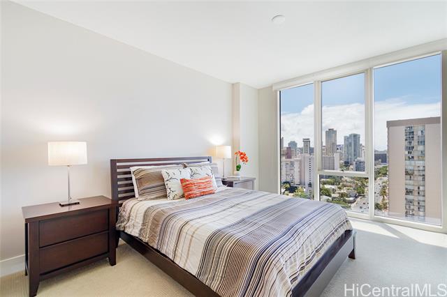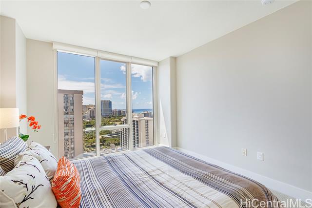 RARE 2-bed, 2-bath, highly desired CORNER unit—one of the largest layouts—offering BRIGHT, airy living w/EXTRA WINDOWS for your added comfort! Upgraded w/NEWER kitchen appliances, HARDWOOD FLOORS, carpet, CUSTOM window shades & water heater. EXPANSIVE lanai w/STUNNING OCEAN, Waikiki & mountain views. Prime Waikiki location near Ala Moana, beaches, dining & bus lines. RESORT-STYLE amenities: pool, jacuzzi, fitness, BBQ, rec room, bike/surf racks, dog park, garden, lobby fire pit, 24-hr concierge, guest parking & pet-friendly living.