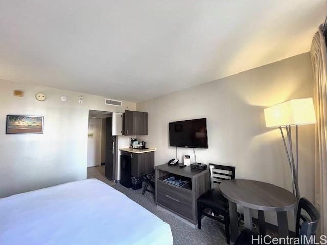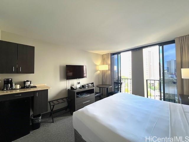 Priced to sell as seller is very motivated. The Palms Waikiki is a boutique hotel that represents the very best of Oahu. Meticulously maintained over the years, both the guest rooms and common areas are clean and welcoming, ensuring a comfortable stay. The fan coil units of the central air-conditioning system have just been replaced, so returning to your room from the outdoor heat, you’ll be greeted by a refreshingly cool and pleasant atmosphere. In 2020, the entire interior of this was renovated, during which the carpets, cabinets, closets, and furniture were all renewed. The location is ideal, offering the perfect balance of Ala Moana’s city lifestyle and Waikiki’s resort atmosphere. Smaller rooms like this unit are especially popular with investors, as they benefit from lower property taxes and maintenance fees. Despite its compact size, the unit is surprisingly well equipped, featuring a kitchenette with a microwave and refrigerator, a dining table with seating for two, a king-size bed comfortably suitable for two people, a closet, and even a bathroom with a bathtub. It is an ideal opportunity for those new to real estate investment.