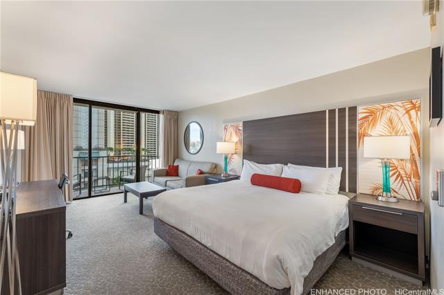 Unit 816 at the Palms at Waikiki offers a rare opportunity to own a legal, turnkey short-term rental with strong income history and deeded parking. One of the larger studio layouts in the building, this fully renovated unit is ready for immediate use and can be self-managed or placed into the hotel rental pool. The southeast-facing orientation captures views of Diamond Head, ocean, city Skyline, which consistently appeals to guests and supports strong nightly rates. The unit has a proven performance record, generating approximately $63,000+ in annual gross income with a 4.96-star rating, over 80 reviews, and roughly 90% occupancy. Renovated in 2020 as part of the hotel refresh program, the unit features custom upgrades that set it apart from standard inventory. Owners and guests enjoy access to quaint hotel amenities including a pool, BBQ area, fitness center, laundry facilities, front desk services, bell service, and 24-hour security. Located at the gateway to Waikiki and just blocks from Kahanamoku Beach, shopping, dining, and world-class resorts, this property offers flexibility for continued rental income, personal use, or future resale of a high-demand condotel with parking.